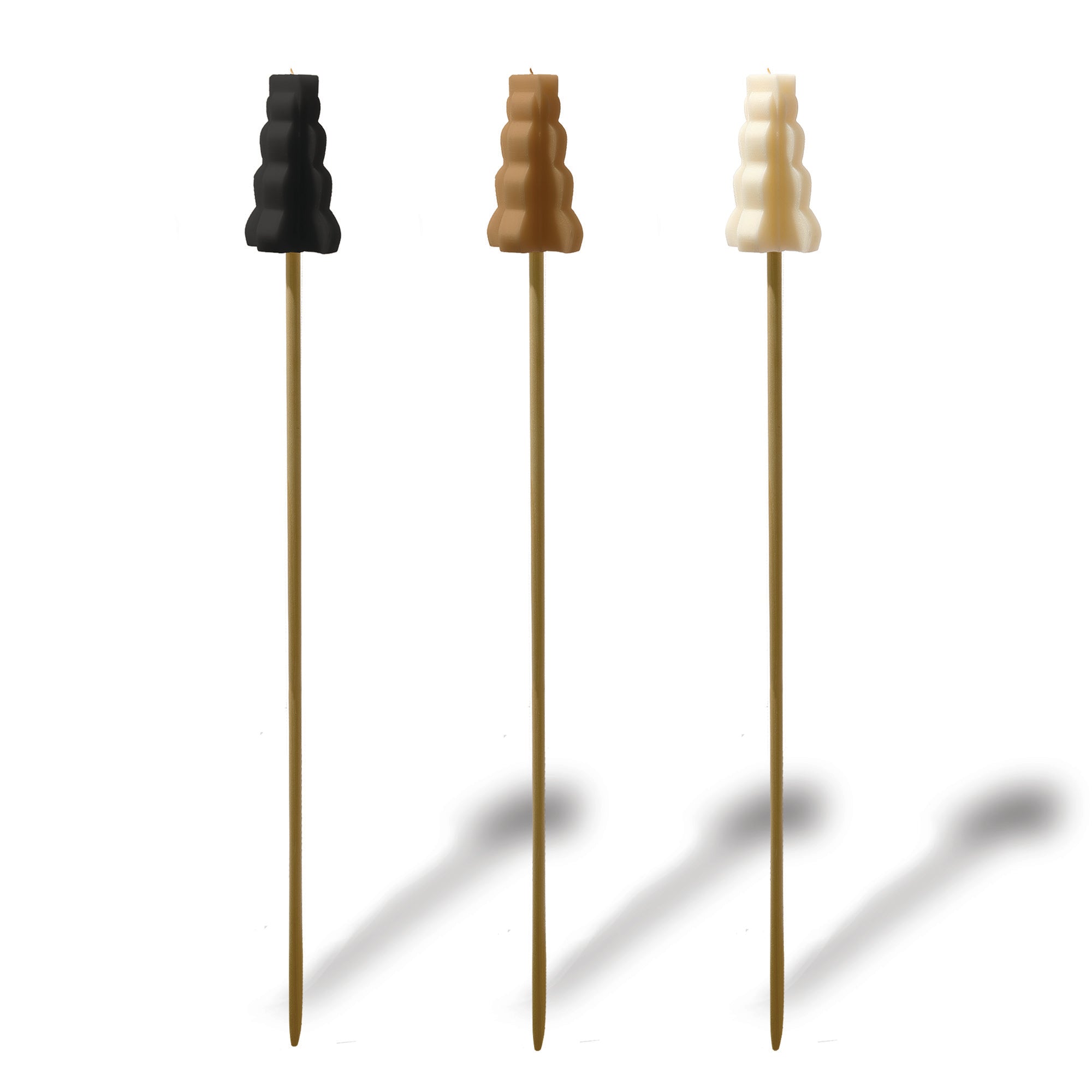 Discover the Cinder Citronella Torch Explorer Set, an essential for outdoor décor and entertaining. This 12-piece set includes four torches of each scent—Lavender, Yuzu, and Santal—diffusing citronella fragrances that keep insects at a distance. Each 45" torch features a long wooden dowel with a taper candle on top that can be staked into the soil, providing unforgettable ambiance as they flicker in the open air.