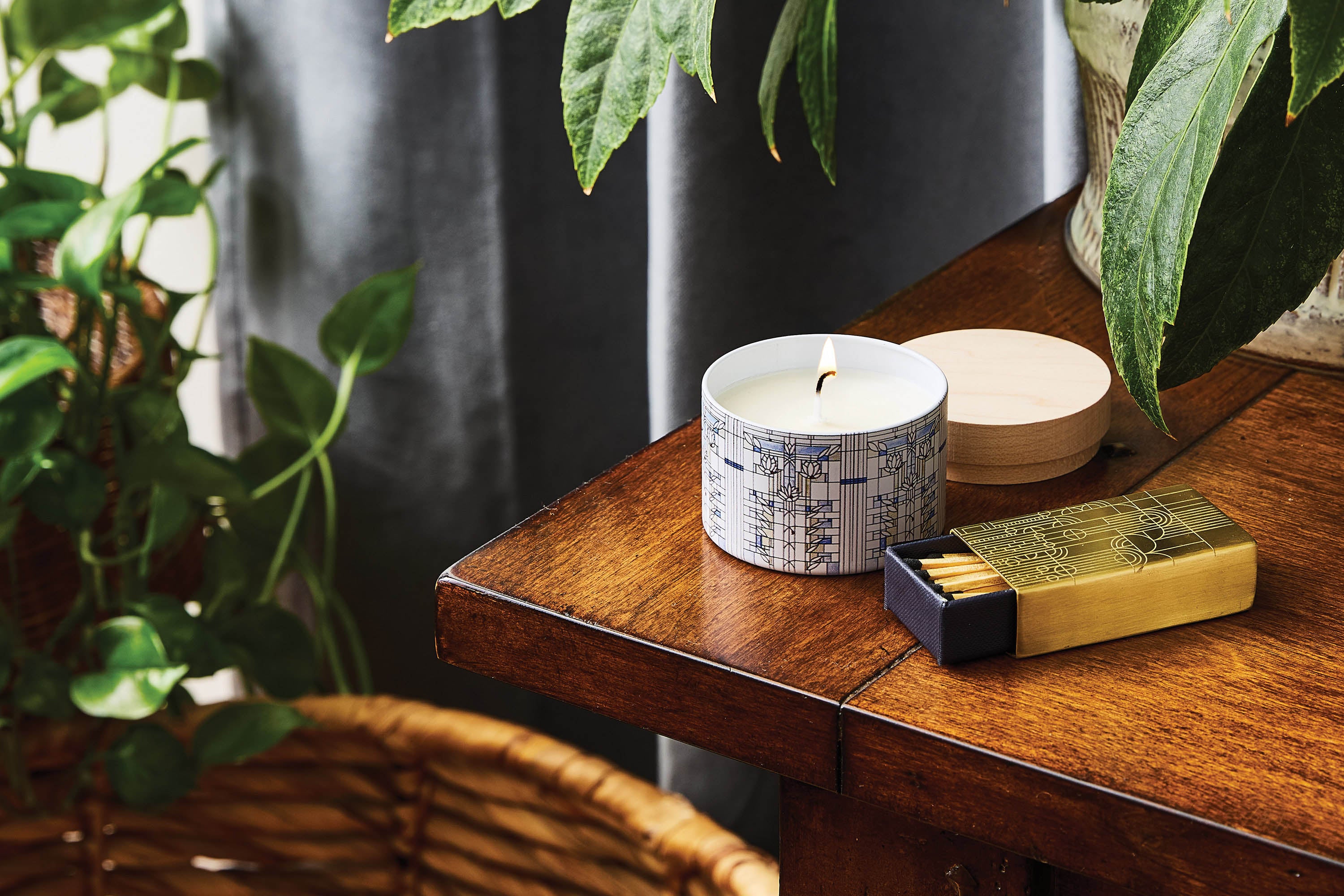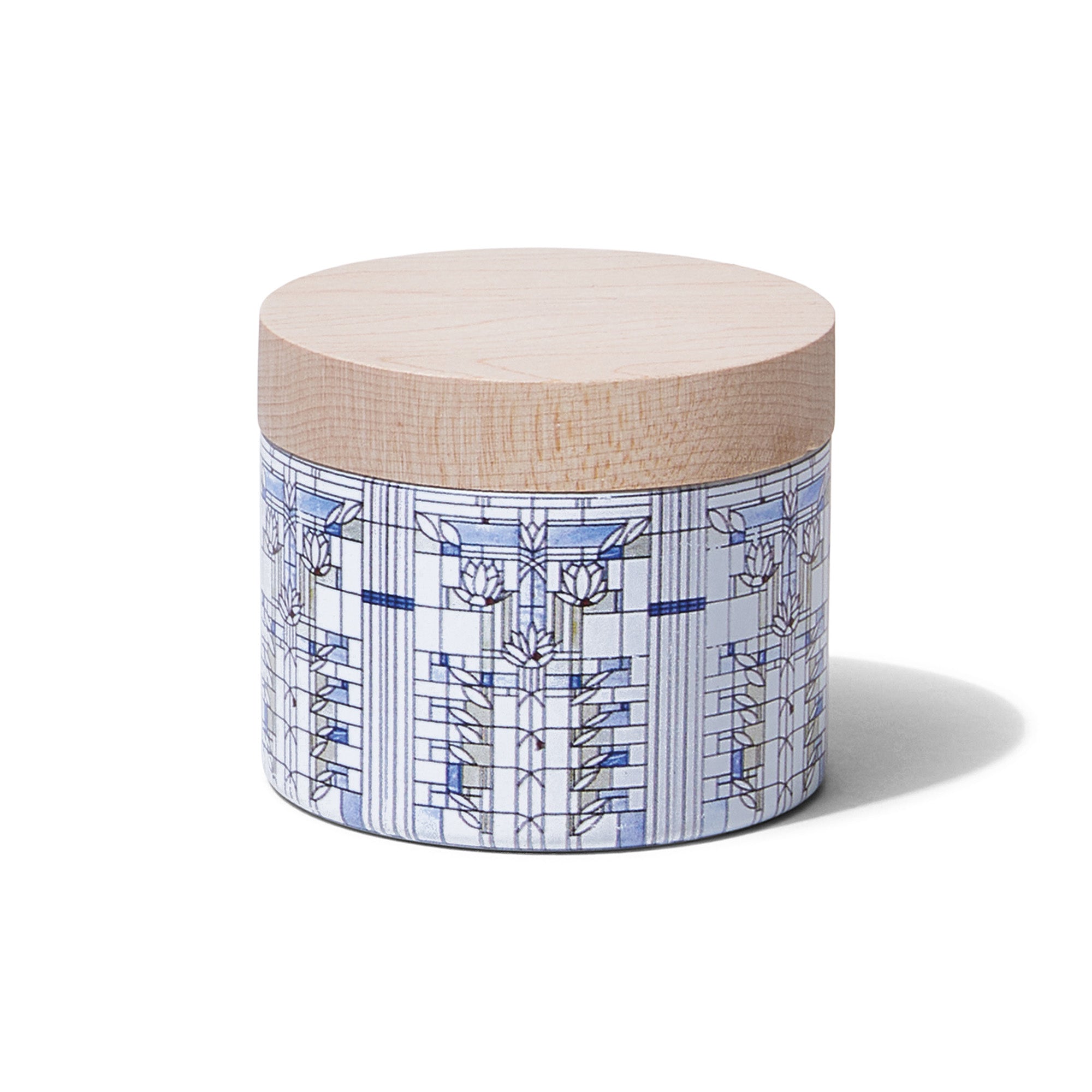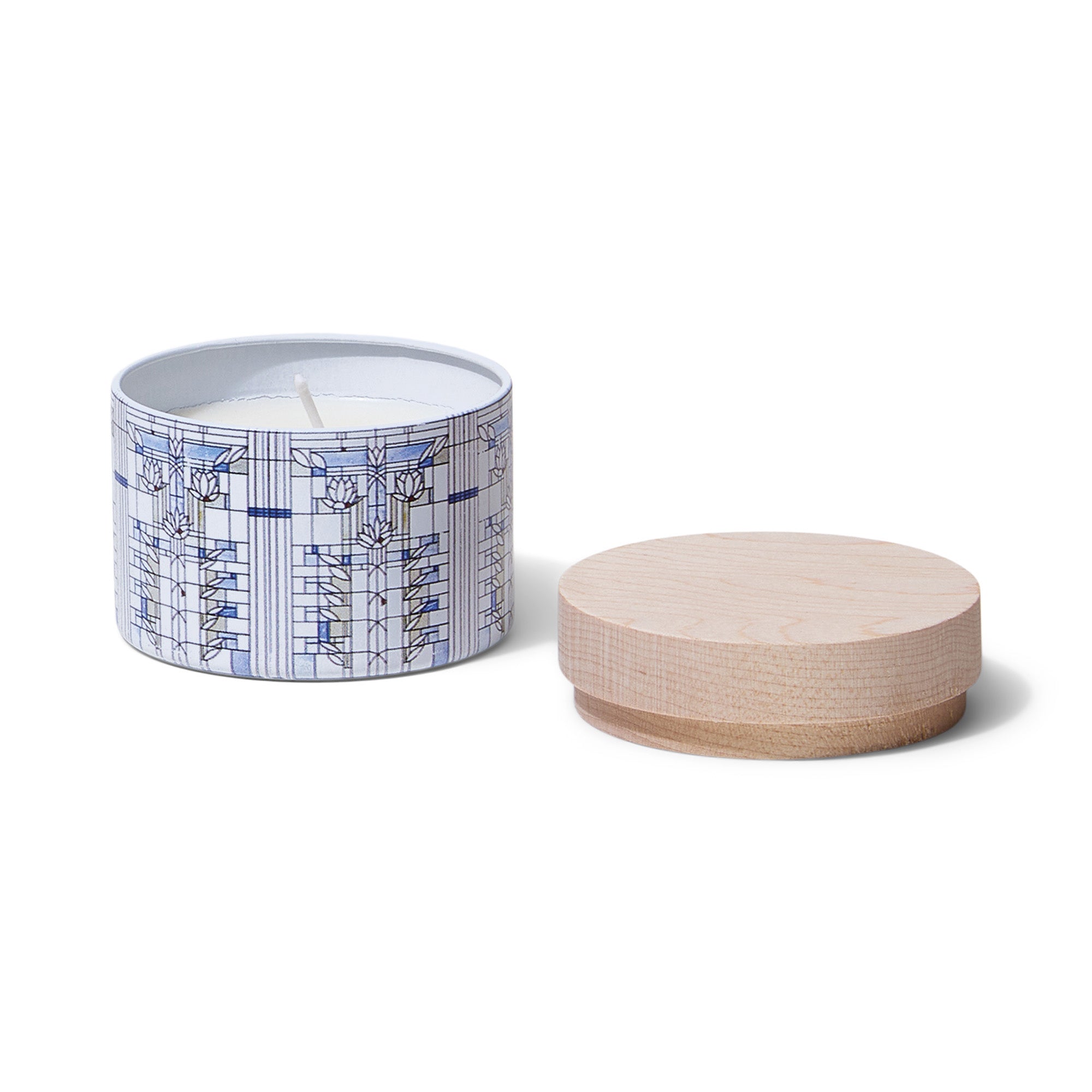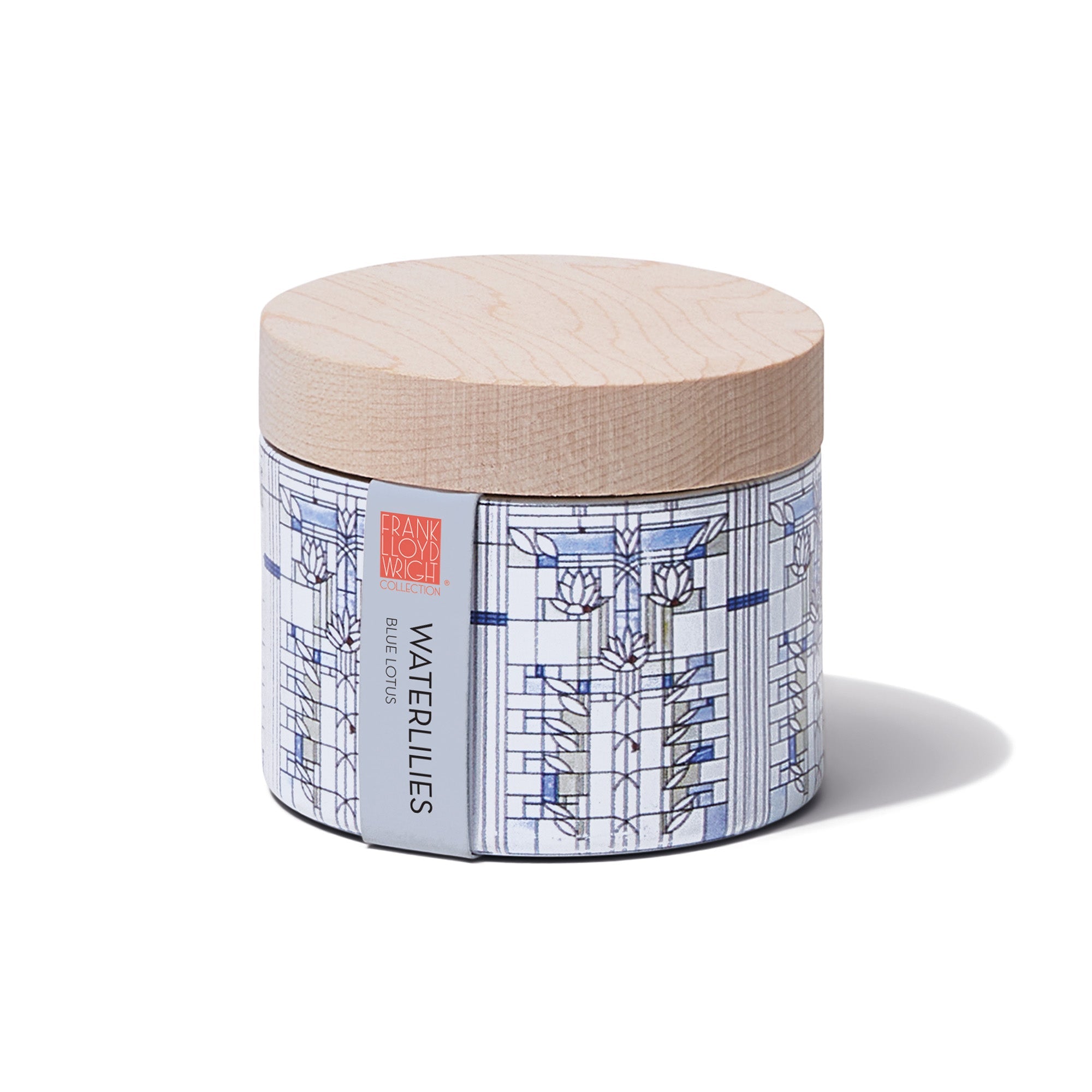 Designed as an entry point into the Frank Lloyd Wright Collection, the Waterlilies Petite Candle brings Wright's vision into a small, giftable format meant for discovery. Featuring artwork adapted from his unproduced Waterlilies design and scented with Blue Lotus, a serene blend of aquatic florals, lotus petals, and amber, this indoor tin candle is ideal for mixing into shelves, bedside tables, or curated gift moments. Crafted with 100% essential oil, this smaller format offers an intimate introduction to Wright's design heritage.