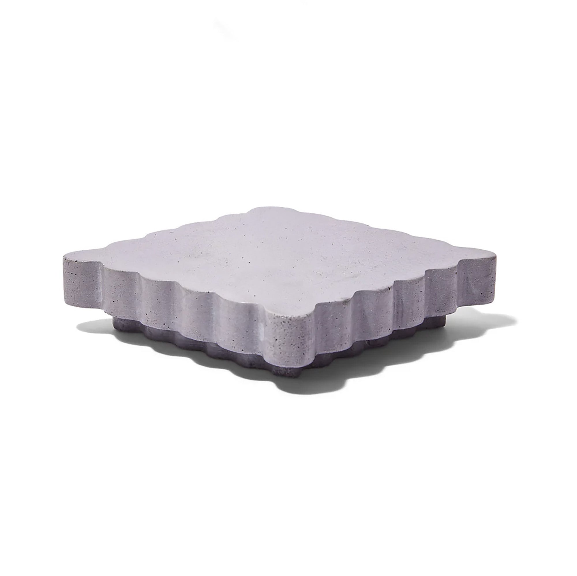 With its carefully constructed silhouette, this grey cement tray features a contemporary look and softly scalloped edges. Designed to host Cinder Citronella Tapers, Classic Pillars, and Incense Shapes, it's a versatile display piece that can be styled both indoors and out.
