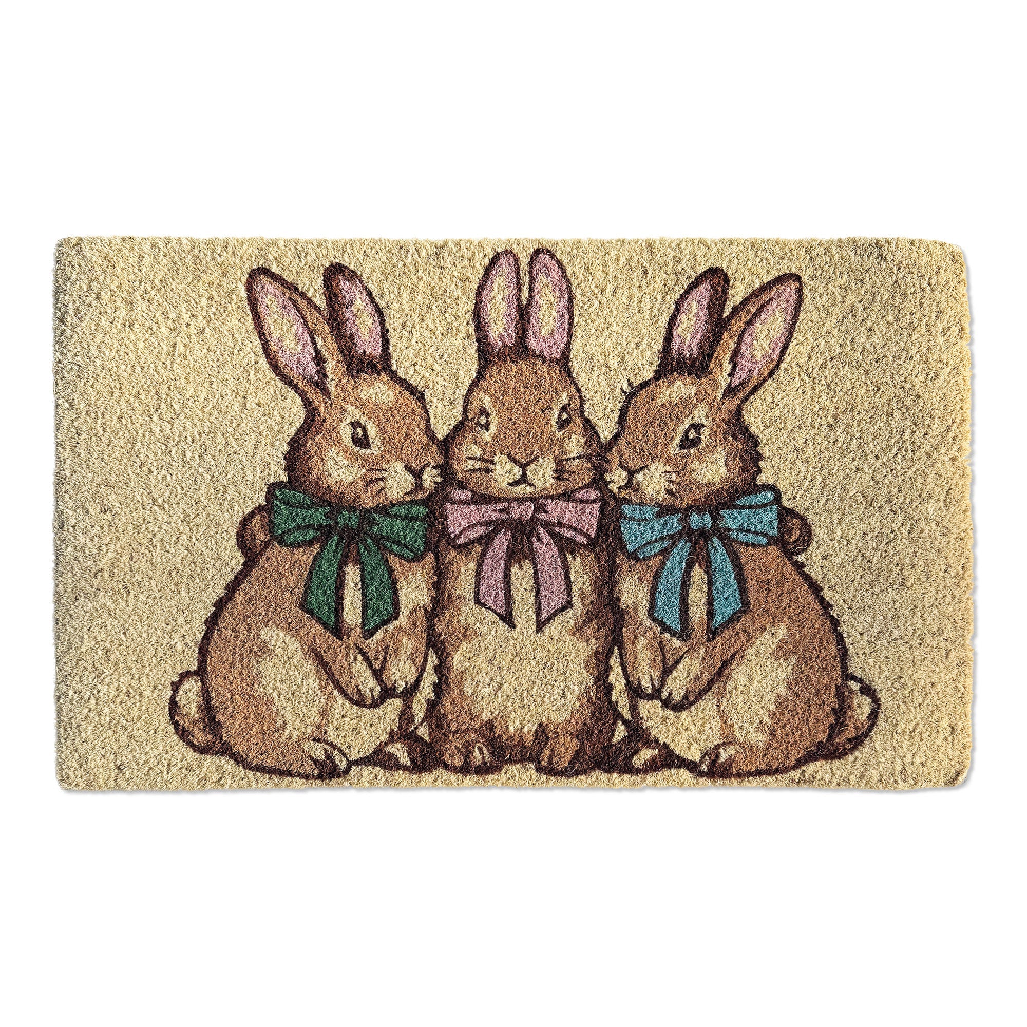 A cheerful spring greeting that feels right at home during Easter and beyond. Featuring playful bunnies accented with soft pastel bows, this natural coir doormat brings warmth and personality to the entryway while helping keep muddy footprints outside.